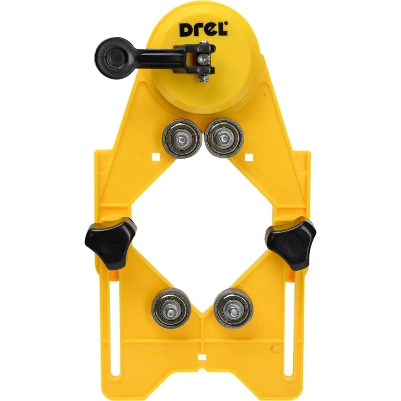 Materiał: Tworzywo sztuczne Mocowanie: Mocowanie na przyssawki Skład zestawu: 1 pojemnik na wodę Zastosowanie: Jako prowadnica do wierteł i koron wiertniczych. Dodatkowe informacje: Zakres otworów od 22 do 80mm Opis: Służy do wiercenia otworów w gresie, gresie porcelanowym, granicie i marmurze. Pozwala na odpowiednie chłodzenie wierteł. Dzięki mocowaniu na przyssawkę, prowadnica pozwala wykonywać otwory na powierzchniach poziomych i pionowych dokładnie w wyznaczonym miejscu, bez ryzyka przesunięcia się wiertła.
