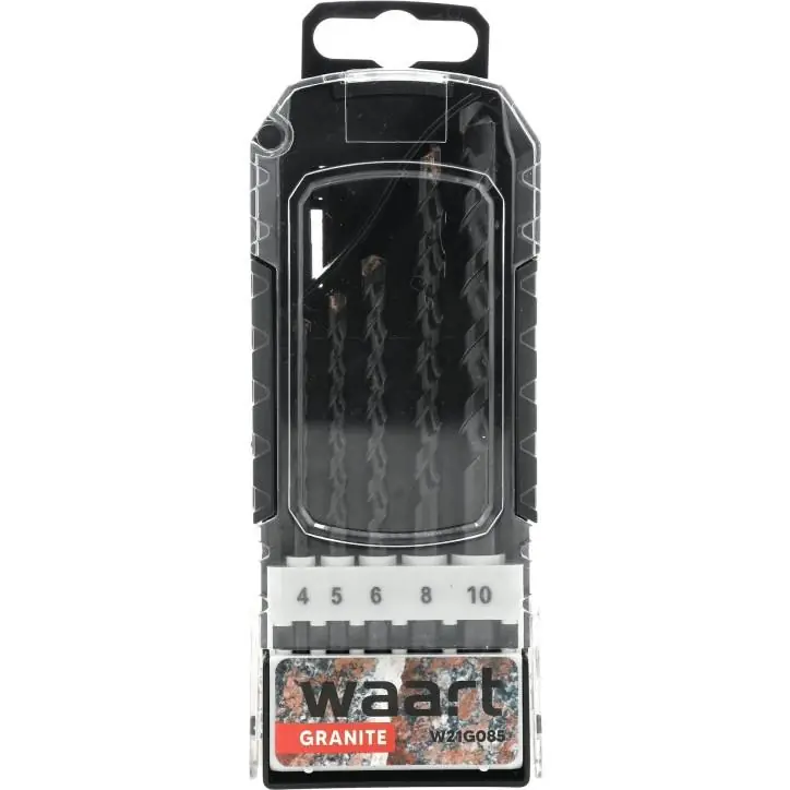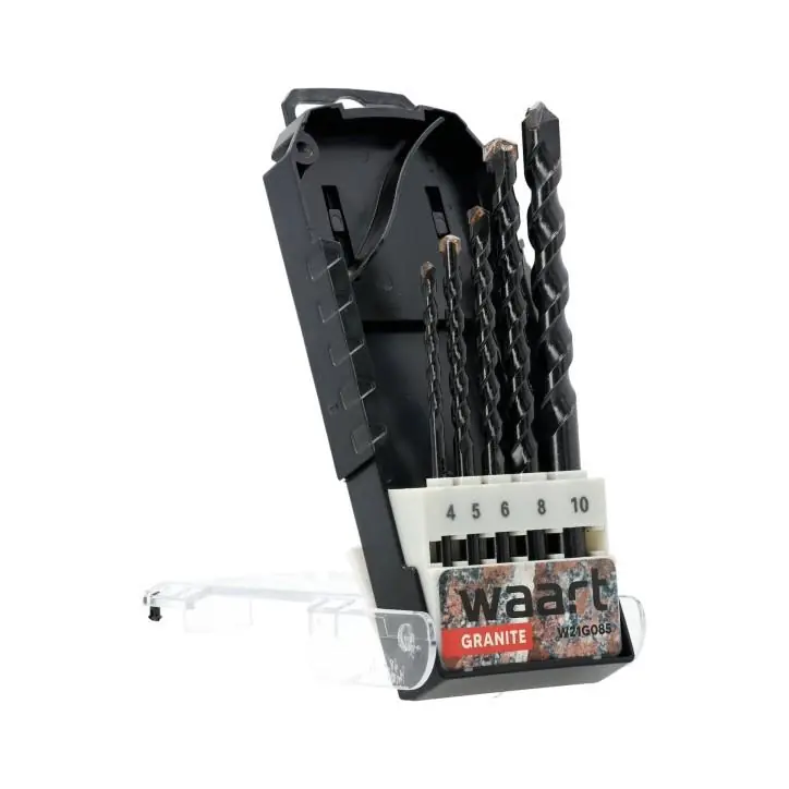 Materiał: Korpus wiertła wykonany z wytrzymałej stali narzędziowej zakończony ostrą płytką z węglika spiekanego Mocowanie: Walcowe Skład zestawu: Wiertła komplet 5szt w rozmiarze: 4 ,5 ,6 ,8 ,10 mm Zastosowanie: Wiercenie w granicie, kamieniu Opis: Wysokowydajne wiertło do wiercenia w granicie i marmurze, Wiertła mają specjalną konstrukcję zarówno do wiercenia udarowego jak i bez udaru (szczególnie jest to przydatne w przypadku wiercenia w cienkich płytach np. granitowych). Wiertło widiowe se produkowane są z najwyższej jakości stali z hut niemieckich bądź austriackich, Końcówki widiowe wierteł wykonane z wysokiej jakości węglika spiekanego, specjalnie szlifowane z wyraźnym prowadzeniem, Wiertła te cechują się dużą trwałością i precyzją wykonywanych otworów Dzięki specjalnej geometrii wiertła i płytce z węglika spiekanego nadają się do wiercenia we wszystkich, nawet najtwardszych rodzajach granitu. Specjalna konstrukcja wiertła powoduje znacznie mniejsze wibracje podczas pracy i odporność na złamanie, Innowacyjny system łączenia: szczyt i korpus wiertła połączone są ze sobą za pomocą zgrzewania oporowego, co zabezpiecza przed złamaniem, Do stosowania z udarowymi wiertarko-wkrętarkami i wiertarkami, oraz z bez udarowymi wiertarko-wkrętarkami i wiertarkami z możliwością mocowania wierteł cylindrycznych,