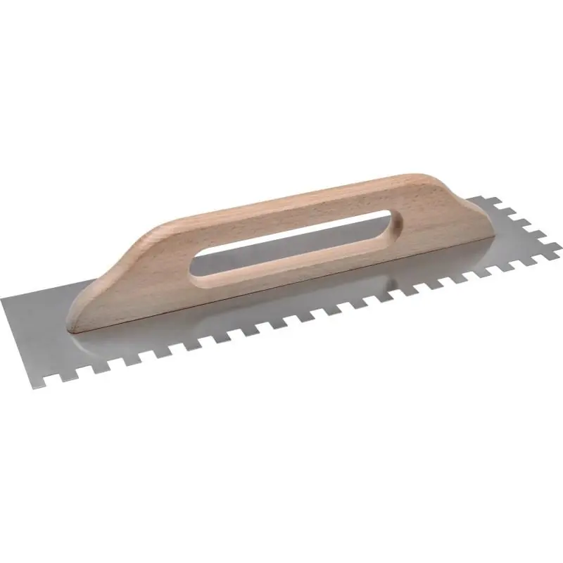 Materiał: Stal nierdzewna, drewno Skład zestawu: Paca jedna sztuka Zastosowanie: Do prac murarskich i elewacyjnych, przy kładzeniu płytek ceramicznych Opis: Stalowa paca nierdzewna marki DREL z drewnianym uchwytem przeznaczona do rozprowadzania klejów samorozpływnych, grubowarstwowych i odkształcalnych na płytkach podczas prac glazurniczych oraz wykonania na nich bruzd, które gwarantują lepszą przyczepność płytki do podłoża. Wszystkie pace zębate z tej serii zostały stworzone z myślą o maksymalnej wygodzie użytkownika oraz efektywności jego pracy. Zastosowane tu rozwiązania, surowce i technologie przekładają się na odczuwalny komfort oraz poczucie skuteczności i precyzji osiąganego efektu.