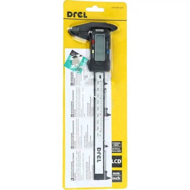 Suwmiarka wykonana z lekkiego, ale wytrzymałego włókna węglowego, co czyni ją lżejszą niż suwmiarki stalowe, a jednocześnie odporną na korozję i zużycie. Zakres pomiaru: 0 - 150 mm (15 cm) Automatyczne wyłączanie w celu oszczędzania baterii po dłuższym czasie bezczynności. Przycisk zerowania pozwala na resetowanie pomiarów w dowolnym punkcie suwaka. Elektroniczny wyświetlacz LCD, który zapewnia łatwy i czytelny odczyt pomiarów z dokładnością do 0,01 mm. FUNKCJE POMIAROWE zewnętrzne (np. średnica zewnętrzna) wewnętrzne (np. średnica wewnętrzna otworów) głębokości (np. głębokość otworów lub rowków) Dokładność pomiaru wynosi około ±0,2 mm. Działa na standardową baterię typu guzikowego (np. LR44), która jest łatwa do wymiany.