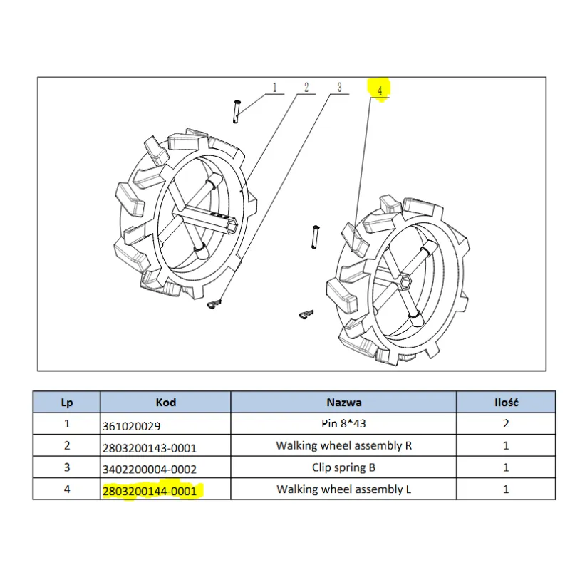 Ten model należy do kategorii części, co oznacza, że jest produktem przeznaczonym do uzupełniania, naprawy lub wymiany elementów eksploatacyjnych w urządzeniu. Dzięki temu użytkownicy mogą utrzymać swoją glebogryzarkę w pełnej sprawności i zapewnić jej dalszą użyteczność. To rozwiązanie pozwala na szybkie uzupełnienie wyposażenia w przypadku zużycia lub uszkodzenia koła.