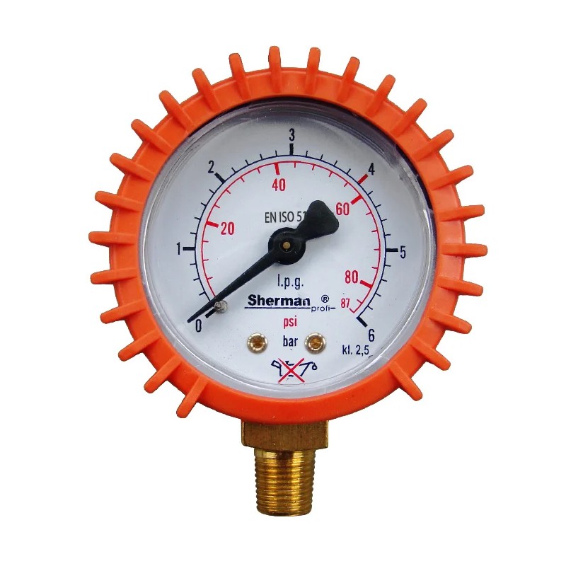 Manometr z osłoną fi 50 mm LPG 6bar 1/8RH MOUSE to precyzyjny wskaźnik ciśnienia, idealny do kontroli gazu LPG. Sprawdza się w asortymencie manometrów i rotametrów, zapewniając czytelny odczyt.