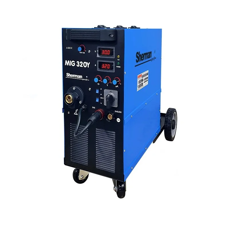 Spawarka Sherman MIG 320Y/4R (3x400V 320A/60% IGBT, 4R, wyświetlacz, uchwyt MIG 4m) to wydajna spawarka MIG/MAG z 4-rolkowym podajnikiem, idealna do profesjonalnych prac warsztatowych i produkcyjnych.