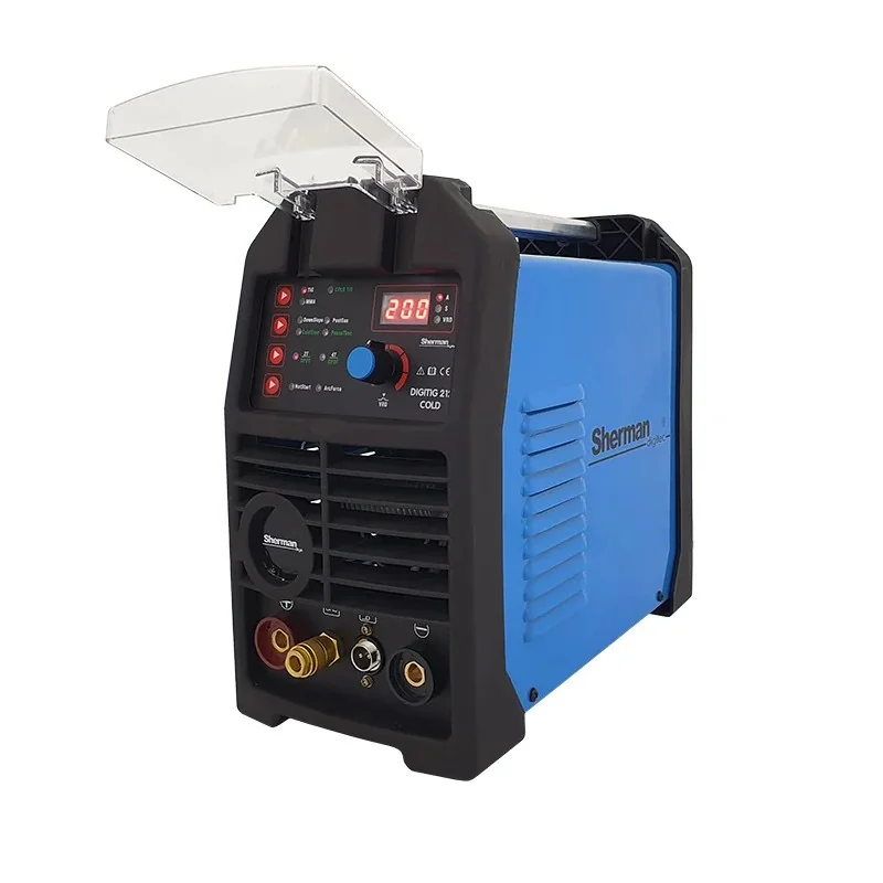 Spawarka Sherman DIGITIG 212 COLD (230V, 200A/60% IGBT, 2T/4T, wyświetlacz, ster.cyfr.) to spawarka TIG zapewniająca precyzyjną regulację parametrów i wydajne spawanie cienkich materiałów dzięki chłodnemu startowi.