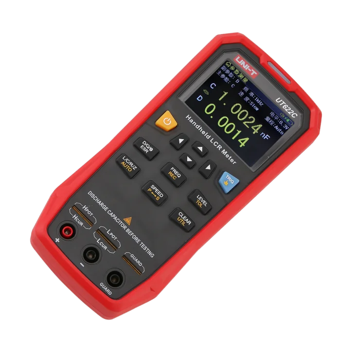 Jeśli chodzi o zakresy pomiarowe, Uni-T UT622C obsługuje szerokie spektrum wartości. ✅ Indukcyjność można mierzyć od 0,00 µH do 99,999 H, a pojemność od 0,00 pF do 99,999 mF. Rezystancja i impedancja mieszczą się w przedziale 0,000 Ω do 9,9999 MΩ, co czyni go narzędziem wszechstronnym. Dodatkowo, miernik pozwala na pomiar ESR w zakresie od 0,000 Ω do 999,99 Ω. 🔍