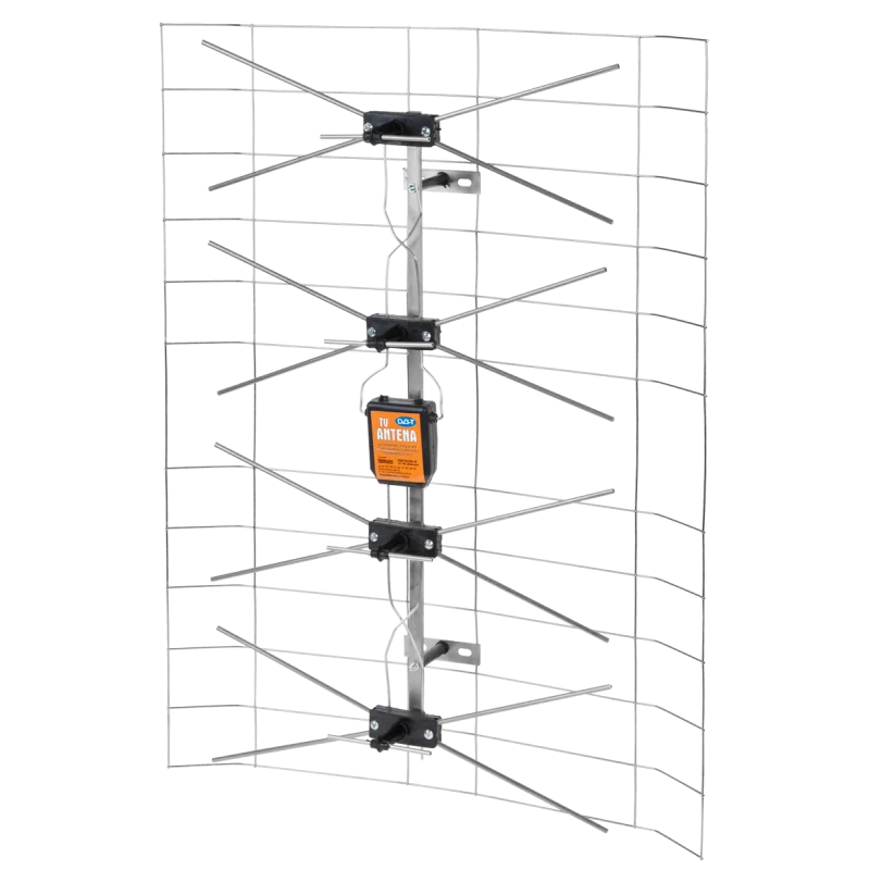 Dane techniczne: - Kanały odbioru: 6 - 12, 21 - 60 - Zysk energetyczny: 13.5 - 60 dB (w zależności od wersji) - Widoczność kątkowa: 46° - Widoczność kątowa pionowa: 27° - Impedancja wyjściowa: 75 Ohm - Wymiary zewnętrzne: 800x600 mm - Masa anteny: 900g
