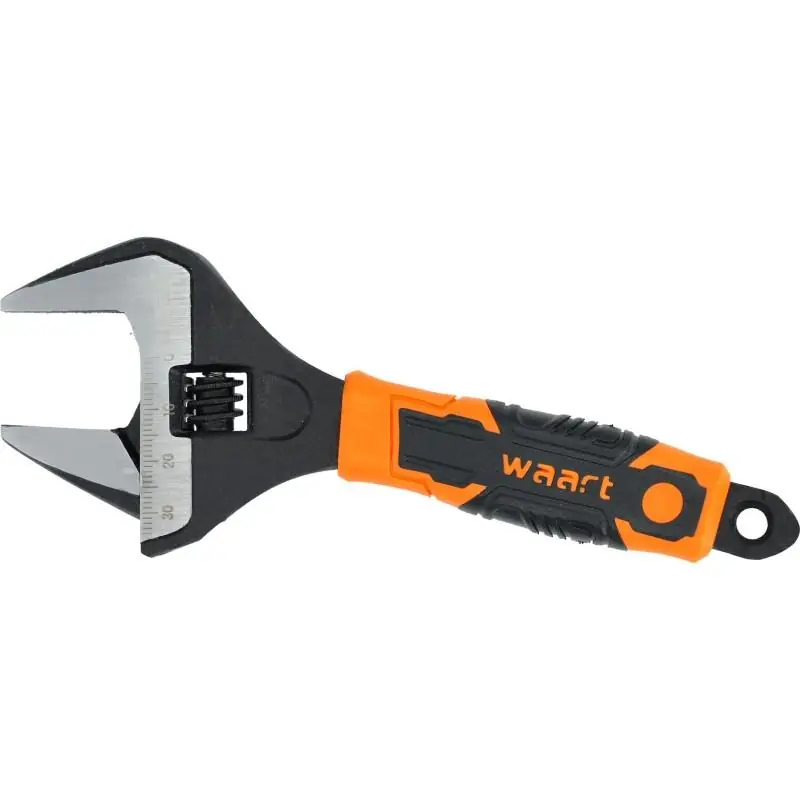 Klucz nastawny widoczny na zdjęciu to nowoczesne narzędzie ręczne przeznaczone do precyzyjnego dokręcania i odkręcania śrub oraz nakrętek o różnych rozmiarach. Jego smukła głowica z wąskimi szczękami umożliwia pracę w ciasnych i trudno dostępnych miejscach, a ergonomiczna, dwukomponentowa rękojeść zapewnia komfort oraz bezpieczeństwo pracy. Wysokiej jakości stal CrV gwarantuje trwałość oraz odporność na uszkodzenia mechaniczne. Klucz wykonany został z hartowanej stali CrV, która zapewnia zwiększoną odporność na zginanie, ścieranie i korozję. Ten materiał pozwala na długotrwałe użytkowanie narzędzia w trudnych warunkach warsztatowych. Dokładnie szlifowane szczęki z precyzyjnie dopasowanym profilem zębatki gwarantują płynność działania mechanizmu regulacyjnego oraz stabilny chwyt śruby. Głowica klucza została zaprojektowana z myślą o pracy w ograniczonej przestrzeni, np. w komorach silnikowych, pod zlewem lub w szafkach instalacyjnych. Mimo cienkiego profilu, szczęki zachowują wysoką wytrzymałość mechaniczną. Mechanizm zębatkowy umieszczony bezpośrednio w głowicy klucza umożliwia łatwe i płynne dopasowanie szczęk do rozmiaru śruby lub nakrętki. Pomocna, grawerowana skala metryczna ułatwia szybki dobór szerokości rozwarcia. Uchwyt pokryty jest antypoślizgowym materiałem w kontrastowych kolorach (czarny i pomarańczowy), zapewniającym wygodę, bezpieczeństwo i pewny chwyt – nawet przy pracy w rękawicach lub mokrych warunkach. Klucz przeznaczony jest do zastosowań: domowych i warsztatowych, instalacyjnych (wod-kan, gaz), motoryzacyjnych i serwisowych, w przemyśle i serwisach technicznych, w ciasnych przestrzeniach, gdzie standardowy klucz nie mieści się z powodu dużej głowicy.