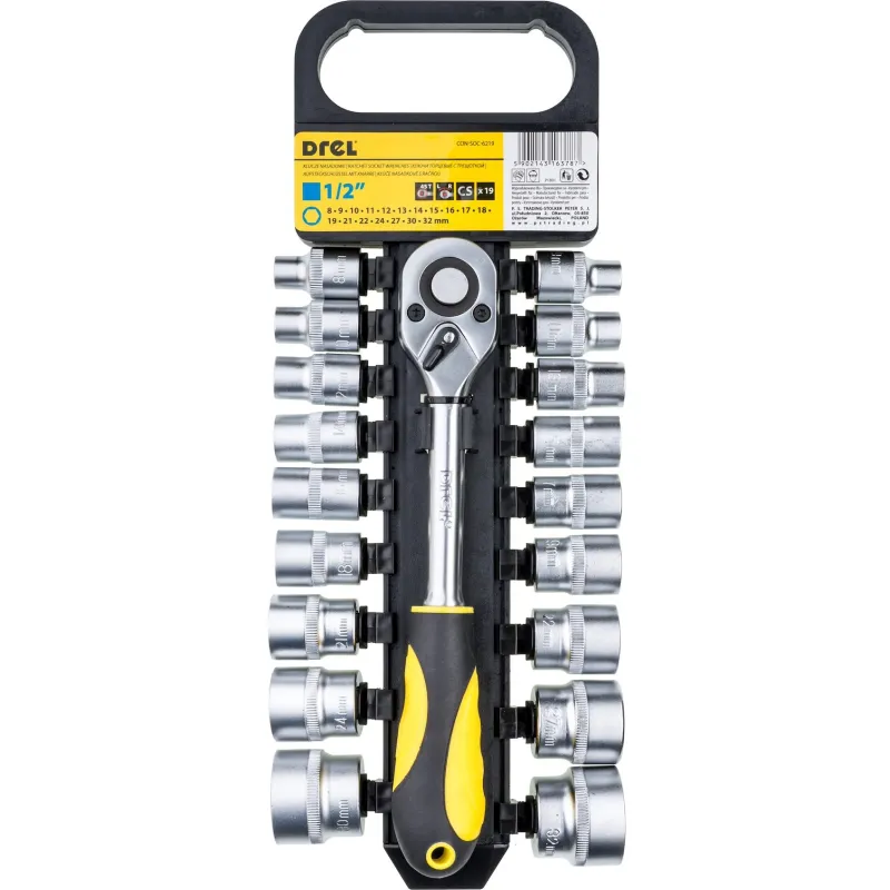 Zestaw nasadek z grzechotką 1/2", 19 szt.