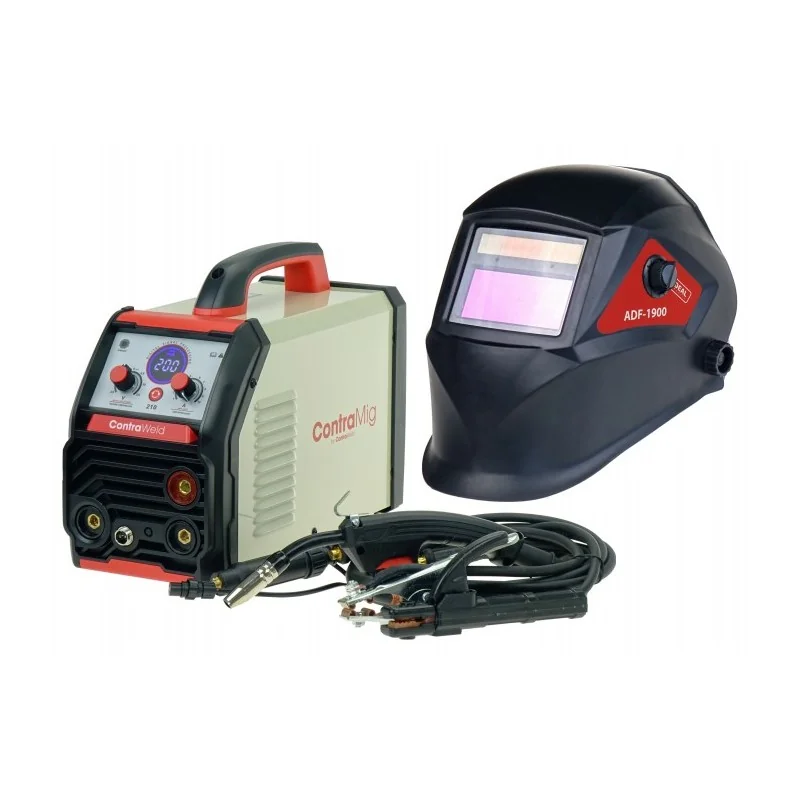 Półautomat spawalniczy ContraMig 210 z przyłbicą to inwertorowy sprzęt do spawania metodą MIG/MAG na napięciu 230V, zapewniający wysoką jakość spoin i efektywność pracy.