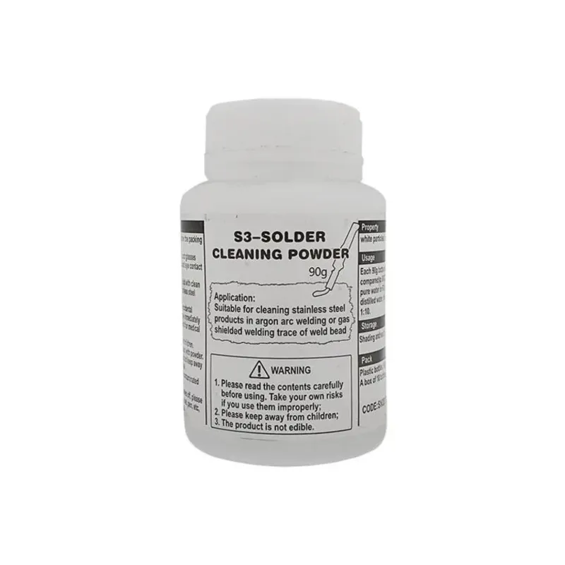 Proszek do czyszczenia spoin S3 SN081025-A 90g to preparat przeznaczony do usuwania zanieczyszczeń po spawaniu w kontekście urządzeń do czyszczenia spoin. Ułatwia uzyskanie czystych, estetycznych połączeń.