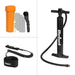 ---------- GŁÓWNE CECHY ---------- Technologia drop-stitch Antypoślizgowy pokład pokryty pianką EVA (3 mm) Zdejmowany, centralny statecznik typu slide-in Centralny uchwyt do przenoszenia deski Zintegrowane uchwyty bagażowe na dziobie wraz z linką mocującą Kółko D-ring na rufie do zapięcia leasha Regulowane, 3-częściowe wiosło z jednym piórem Pompka ręczna wyposażona w manometr