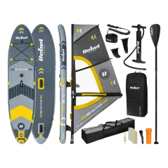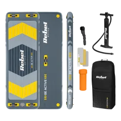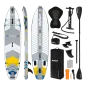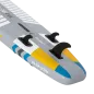 ---------- GŁÓWNE CECHY ---------- Technologia drop-stitch Antypoślizgowy pokład pokryty pianką EVA (3 mm), wzmocniony pasem z włókna węglowego 3 stateczniki typu slide-in: 1 centralny i dwa boczne 2 uchwyty do przenoszenia deski (centralny i tylny) Uchwyt na kamerę sportową na dziobie Zintegrowane uchwyty bagażowe na dziobie i rufie wraz z linką mocującą Kółka D-ring dla mocowania siedziska kajakowego Kółko D-ring na rufie do zapięcia leasha Regulowane, 3-częściowe wiosło z dwoma piórami Pompka ręczna wyposażona w manometr