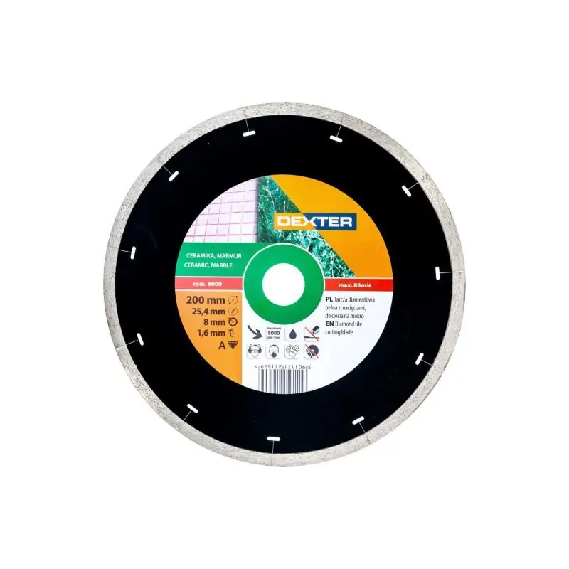 Tarcza diamentowa pełna do gresu z nacięciami 200 x 1,6 x 25,4 mm