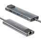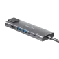 Interfejs: • USB typu C 3.0: maks. 10 Gb/s Porty: • HDMI: 1.4, wyjście wideo 3840x2160 px, 30 Hz • 2x USB 3.0: maks. 5 Gb/s; 5 V, 0,9 A • USB typu C 3.0: maks. 5 Gb/s; 5 V, 0,9 A • USB typu C: ładownie Power Delivery 100 W (20 V, 5 A); transfer danych nieobsługiwany • RJ-45: max. 1000 Mb/s Funkcja OTG: Tak Typ: Aktywny Wspierane systemy operacyjne: Windows, iOS, Android, Linux Współpracuje z procesorami M1 i M2: iPad Pro 2018/2019/2020/2021 / iPad Air 2020 / iPad Mini 2021 / MacBook Pro 2016/2017/2018/2019/2020/2021 / MacBook Air 2016/2017/2018/2019/2020 Plug&Play Dioda LED Materiał obudowy: Anodowane aluminium Długość kabla: 15 cm Wymiary adaptera: 122 x 35 x 15 mm Waga: 62 g