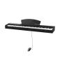 380 barw dźwięków 128 rytmów 88 utworów demo Ustawienia tempa i tonacji Rozpoznawanie akordów Synchronizacja akompaniamentu Metronom Czułość nacisku Dzielenie klawiatury Możliwość podłączenia do komputera Wyświetlacz LCD Rodzaj klawiatury: młoteczkowa Polifonia: 128 Moc: 10 W Impedancja: 8 Ohm Bluetooth: 5.0 Częstotliwość Bluetooth: 2,4 – 2,48 GHz Maks. moc wyjściowa Bluetooth: 4 dBm Liczba klawiszy: 88 Ilość pedałów: 1 Nakrywa klawiatury: Nie Porty: USB-B, MIDI, 5 x AUX 3,5 mm (3 x wyjście słuchawkowe, 1 x SUS, 1 x audio in/out) Materiał: PVC Zasilacz: • Wejście: 110 – 240 V AC; 50/60 Hz • Wyjście: DC 15 V / 3 A • Moc wyjściowa: 45 W • Średnia sprawność podczas pracy: 87,73% • Sprawność przy niskim obciążeniu (10%): 87,06% • Zużycie energii w stanie bez obciążenia: =<0,1 W Wymiary: 144 x 36,5 x 19 cm Waga: 14,18 kg W zestawie: śrubokręt, zasilacz, instrukcja obsługi