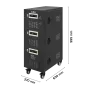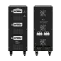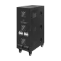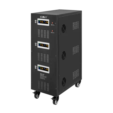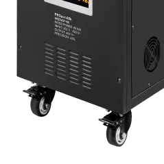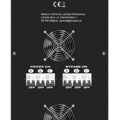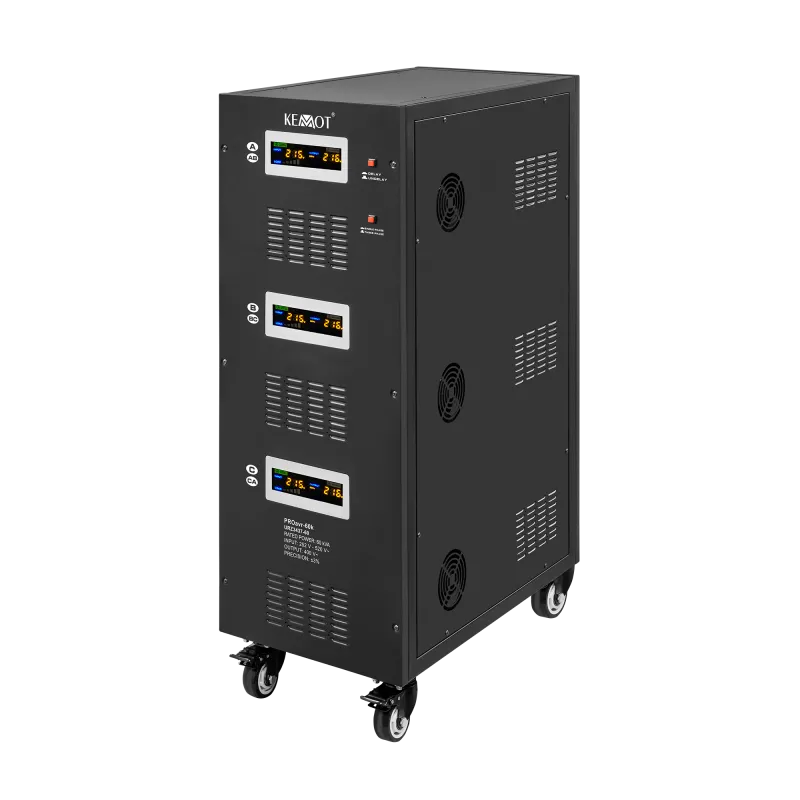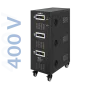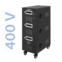 Moc znamionowa: 60000 VA Zakres napięcia wejściowego: 252 – 520 V Minimalne napięcie rozruchowe: 252 V Minimalne napięcie wyjściowe: 310 V Zakres napięcia wyjściowego: 400 V Fazy: 1 / 3 fazy Precyzja stabilizacji: ± 3% Sprawność: 98% Sterowanie stabilizacją: serwo motor Transformator: C.R.G.O. toroidalny Wskaźnik: wyświetlacz LCD Częstotliwość pracy: 50 / 60 Hz Przełącznik opóźnienia startu: 6 / 180 s Materiał obudowy: stal Temperatura pracy: 0 – 40°C Wilgotność względna: 10 – 102% Temperatura przechowywania: -15oC – 45oC Zabezpieczenia: przed przeciążeniem, zwarciem, zbyt wysokim / niskim napięciem, przegrzaniem Uruchomienie chłodzenia: przy 30% mocy znamionowej Wyłączenie chłodzenia: przy 20% mocy znamionowej Wymiary: 630 x 370 x 995 mm Waga: 145 kg