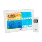 Specyfikacja techniczna Zakres pomiaru temperatury wewnętrznej: -9,9oC - +50oC (zakres błędu pomiaru +/-2 oC) Zakres pomiaru temperatury zewnętrznej: -50oC - +70oC (zakres błędu pomiaru +/-2 oC) Zakres pomiaru wilgotności wewnętrznej i zewnętrznej: 20% - 99% RH (zakres błędu pomiaru +/-8%) Zasilanie stacji pogodowej: Zasilacz 100-240V ~ 50/60Hz/5VDC i 2 baterie AA Zasilanie czujnika pomiarowego: 2 baterie AA=