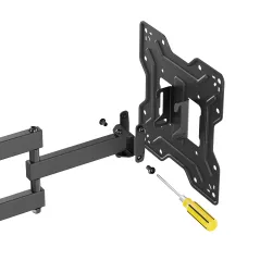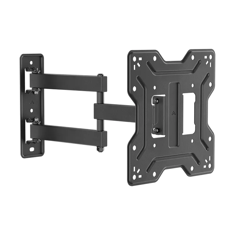 Przeznaczenie: Telewizory LCD Montaż: Do ściany Typ uchwytu: Ruchomy Rozmiar ekranu: 23” – 50” Maks. Obciążenie: 30 kg Standard VESA: 100x100, 100x200, 200x100, 200x200 Regulacja w pionie: +5° ~ -10° Regulacja w poziomie: +90° ~ -90° Odległość od ściany: 55 ~ 392 mm Poziomica: Nie Zarządzanie kablami: Tak Pasuje do zakrzywionych ekranów: Tak Blokada antykradzieżowa: Nie Materiał: Stal Wykończenie powierzchni: Malowany proszkowo Kolor: Czarny W zestawie: Śruby montażowe Wymiary: 392 x 230 x 230 mm