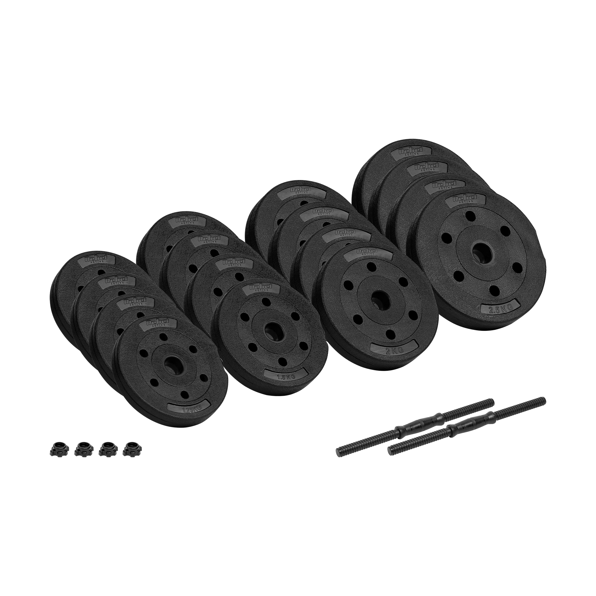 Zestaw oferuje różne poziomy obciążenia, dzięki czemu możesz dostosować trening do swoich celów i poziomu zaawansowania. Kluczowym elementem zestawu RBA-2328-15 są gryfy, które umożliwiają łączenie talerzy wagowych do tworzenia różnych kombinacji obciążeń, zgodnie z preferencjami i poziomem zaawansowania.