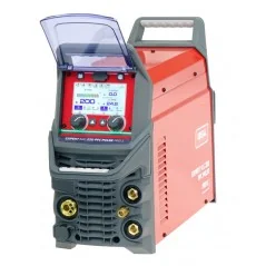 Szybka regulacja synergiczna parametrów spawania poprzez 5-calowy, dotykowy wyświetlacz LCD, czyni urządzenie bardzo łatwym w użyciu. Wystarczy ustawić grubość i rodzaj spawanego materiału i zacząć spawać: inteligentny i automatyczny układ kontroli łuku spawalniczego, krok po kroku, dobierze najlepsze parametry, dla każdej pozycji spawania i dla każdego materiału. Użytkownik może również ustawić ręcznie długość łuku spawalniczego i dopasować wygląd spoiny do własnych potrzeb. Przy metodzie MIG/MAG mamy możliwość wyboru trybu przycisku w uchwycie, pomiędzy pracą w trybie SPOT (spawanie punktowe), 2-takt (bez blokady), 4-takt (blokada przycisku do długich spoin),S2-takt oraz S4-takt.