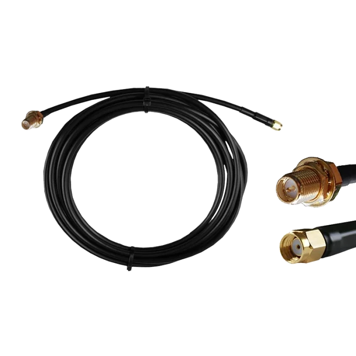 Przedłużacz składający się z 5 metrów kabla H-155 ze złączkami RP-SMA męskie z jednej strony i RP-SMA żeńskie z drugiej strony.
