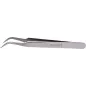 Długość: 115 mm (około 4.5 cala) długości od wierzchołka do uchwytów przeciwieństwie do standardowej, prostej pęsety, odgięta pęseta ma zakrzywione, łukowate wierzchołki. Ta charakterystyka ułatwia manipulację narzędziem w trudno dostępnych miejscach. Pęseta wykonana jest zwykle ze stali nierdzewnej co zapewnia trwałość i odporność na korozję. Zastosowanie: Pęseta odgięta jest idealna do precyzyjnych prac, gdzie potrzebna jest dokładność i kontrola. Często jest wykorzystywana w naprawach elektronicznych do manipulacji małymi elementami, w jubilerstwie do obsługi delikatnych kamieni lub małych elementów ozdobnych, a także w medycynie podczas drobnych zabiegów chirurgicznych.