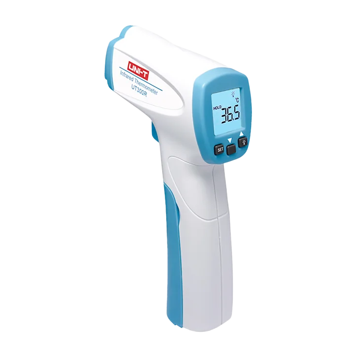 Miernik temperatury UNI-T UT300R, wykorzystując najnowszą technologię umożliwia dokonanie pomiarów temperatury w zakresie 32°C-42,9°. Duża dokładność urządzenia pozwala na szybką i precyzyjną kontrolę temperatury ciała, jak też innych elementów otoczenia, np. przedmiotów, jedzenia, płynów itp.