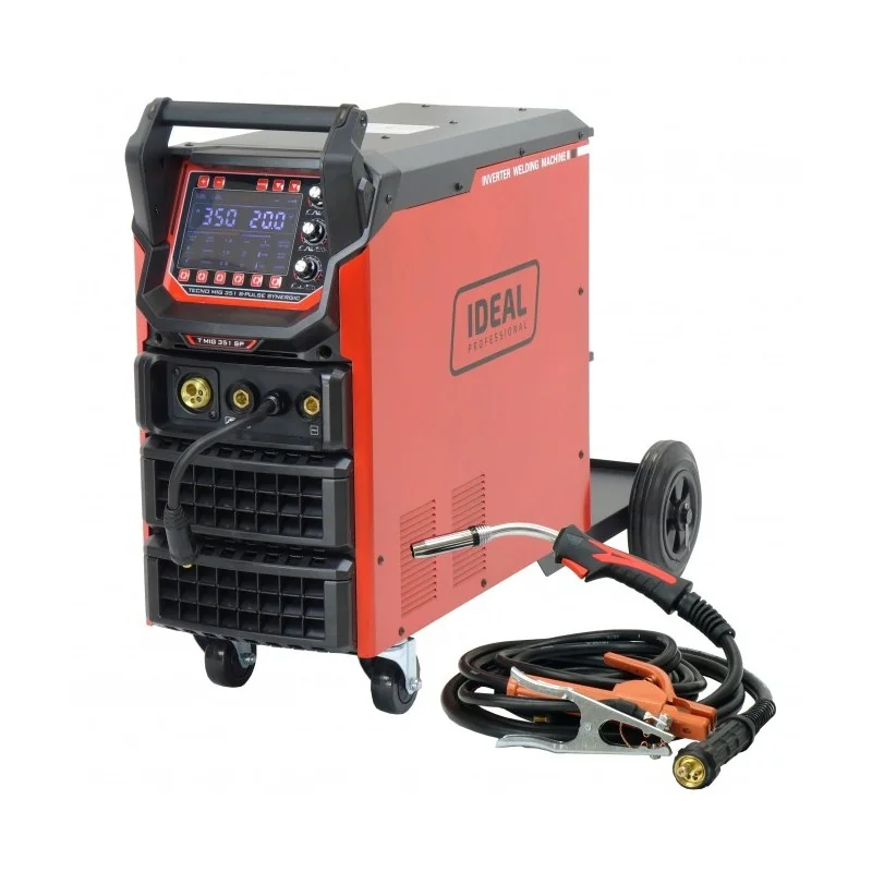 półautomat spawalniczy MIG/MAG, spawanie stali, IDEAL TECNO MIG 351, PULSE MIG, spawanie nierdzewnej, regulacja indukcyjności, MMA spawanie, funkcja VRD, zabezpieczenie przeciw przeciążeniu, chłodzenie wentylatorem.