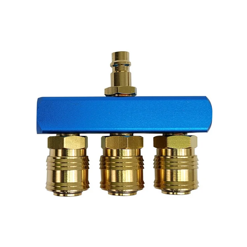 Ten model jest używany w miejscach, gdzie zachodzi potrzeba równoczesnego zasilania kilku odbiorników z jednego punktu. W praktyce rozgałęźniki tego typu są stosowane w instalacjach pneumatycznych, gdzie istotne jest efektywne zarządzanie rozprowadzeniem sprężonego powietrza lub innych gazów technicznych.