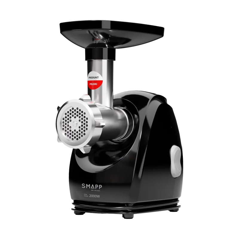 Maszynka do mięsa Smapp 489.8 czarna to praktyczne wyposażenie kuchni, które umożliwia szybkie mielenie mięsa na domowe kotlety lub farsze, zapewniając świeżość i kontrolę nad składem potraw.