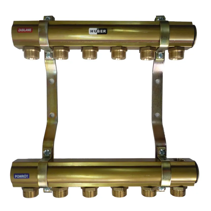 Rozdzielacz do C.O. 1" R, 2 sekcje HU-RW-2N marki Duro System to komponent przeznaczony do instalacji centralnego ogrzewania, umożliwiający rozdział czynnika grzewczego na dwa niezależne obiegi. Dzięki temu rozwiązaniu możliwe jest efektywne zarządzanie ciepłem w dwóch wybranych strefach budynku – na przykład łącząc grzejniki z ogrzewaniem podłogowym lub dzieląc instalację na dwa piętra.