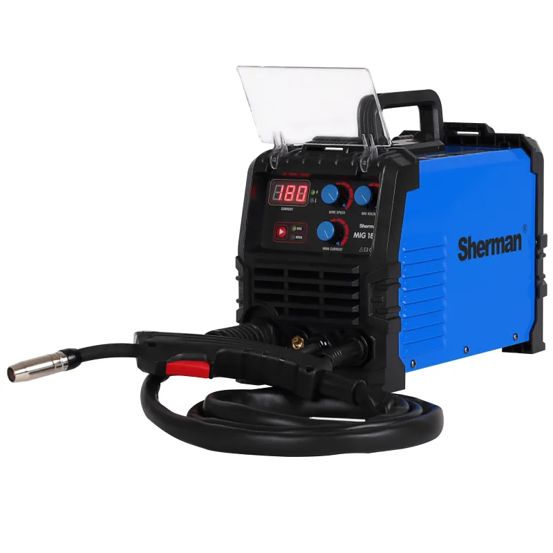 Spawarka Sherman MIG 180FL (230V, 180A/60%, IGBT,2R,spaw. bez gazu, wyświetlacz) to kompaktowa spawarka MIG/MAG umożliwiająca pracę bez gazu, idealna do napraw warsztatowych i prac w terenie.