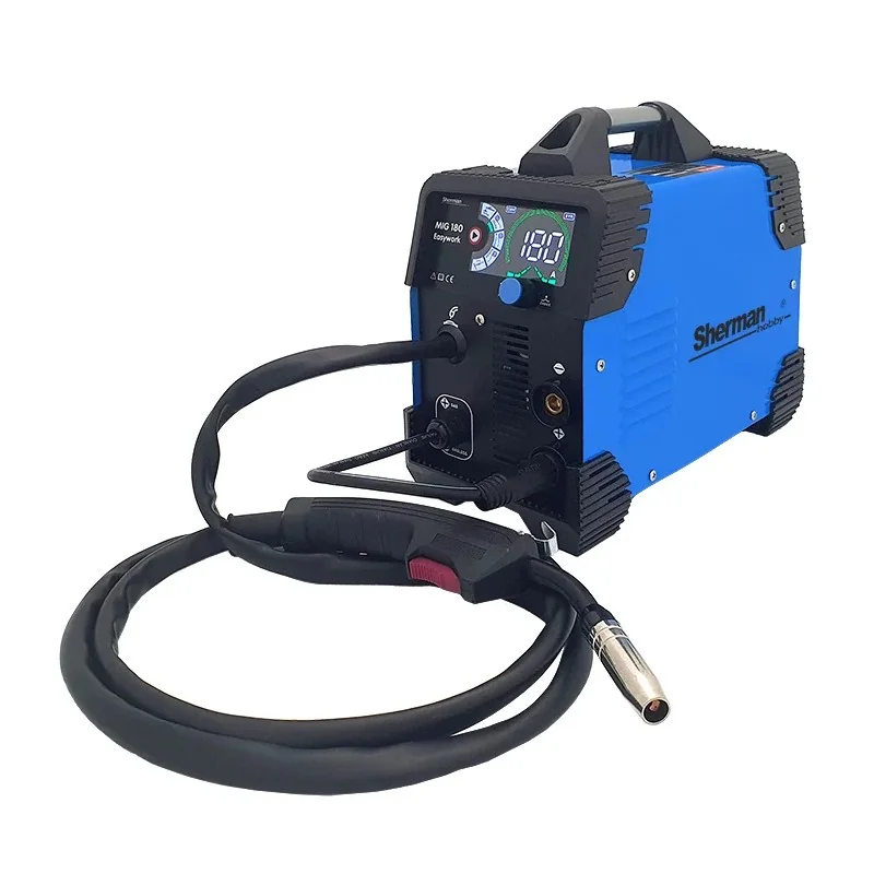 Spawarka Sherman MIG 180 Easywork (230V 180A/60% 2R, spaw. Bez gazu, wyświetlacz LED) to kompaktowy sprzęt z kategorii Spawarki MIG/MAG, idealny do prac warsztatowych dzięki możliwości spawania bez gazu i czytelnemu wyświetlaczowi LED.