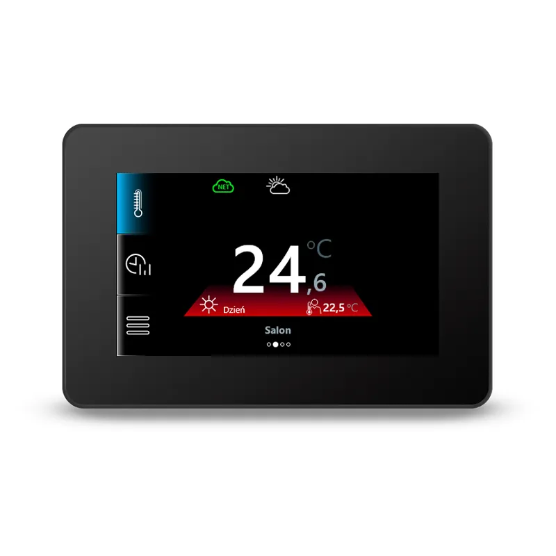 Panel pokojowy ECO STER90 został opracowany specjalnie do współpracy z systemem ECO FLOOR. Jego główną funkcją jest umożliwienie użytkownikowi wygodnej i precyzyjnej regulacji temperatury podłogi oraz powietrza w wybranym pomieszczeniu. Dzięki temu rozwiązaniu możesz ustawić komfortowy poziom ciepła zgodnie z bieżącymi potrzebami, co zwiększa efektywność energetyczną i poprawia codzienny komfort użytkowania domu lub mieszkania.