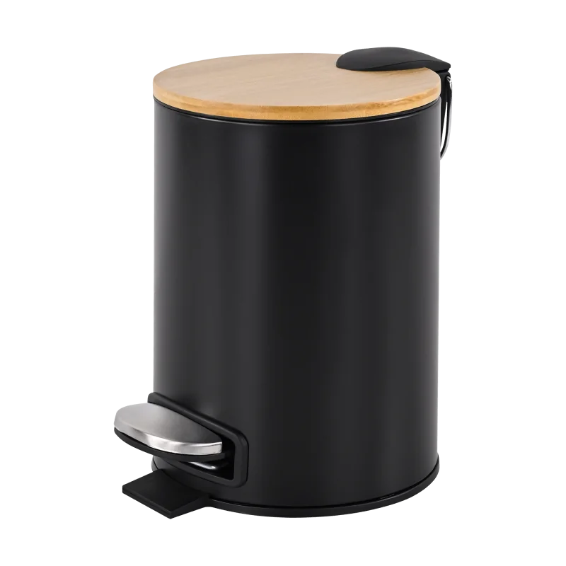 Wewnątrz kosza znajduje się wyjmowane wiaderko z uchwytem, co ułatwia opróżnianie i czyszczenie. Stabilna podstawa z tworzywa chroni powierzchnie przed zarysowaniami, a połączenie żelaza malowanego proszkowo, tworzywa sztucznego i bambusa zapewnia trwałość i estetyczny wygląd na lata.