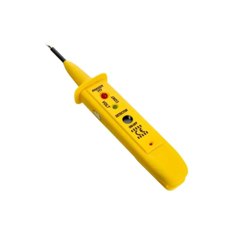 Opis: Fazerem 777 można sprawdzić poprawność pracy urządzeń elektrycznych. W elektronice Fazer 777 pozwala między innymi wykrywać 0/1 oraz sprawdzić czy rezystor, kondensator, dioda i tranzystor nie są uszkodzone. Niezastąpioną funkcją jest wykrywanie napięcia „~” bez potrzeby dotykania obiektu. Narzędzie pozwala na wykrycie przewodów biegnących w ścianach na głębokości do 10 cm jak również wykryć „FAZĘ” wszędzie tam gdzie niemożliwy jest bezpośredni kontakt. Łatwe jest również wykrycie pęknięcia przewodu w izolacji.