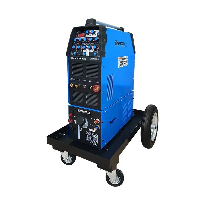 Spawarka Sherman zestaw: TIG 320 AC/DC pulse, chłodnica WS-7,5LT, wózek platformowy TIG to kompletny zestaw z kategorii Spawarki TIG, umożliwiający precyzyjne spawanie aluminium i stali w warunkach warsztatowych.