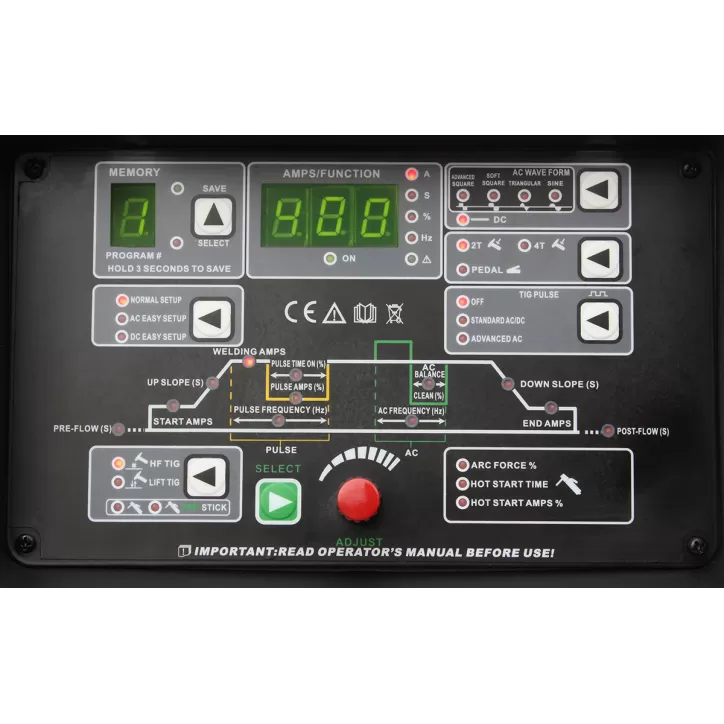 TIG AC + DC - funkcja ADVANCED AC umożliwia spawanie prądem mieszanym AC DC- W pojedynczym cyklu dochodzi do przejścia między prądem przemiennym AC, a prądem stałym z biegunowością ujemną DC(-). Cykl ten powtarza się przez cały proces spawania. Spawanie prądem mieszanym, jest szczególnie przydatne podczas łączenia elementów o różnej grubości. Zmniejsza się również, emisja hałasu w porównaniu do spawania prądem przemiennym AC.