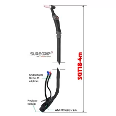Światowej klasy uchwyt spawalniczy SGT18 FLEX 4m z giętkim palnikiem, przeznaczony do spawania metodą TIG.
