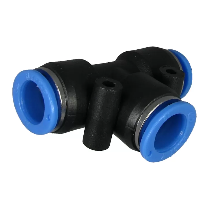 Złączka trójnik T-wtykowa na wąż o średnicy zewnętrznej przewodu 6mm.