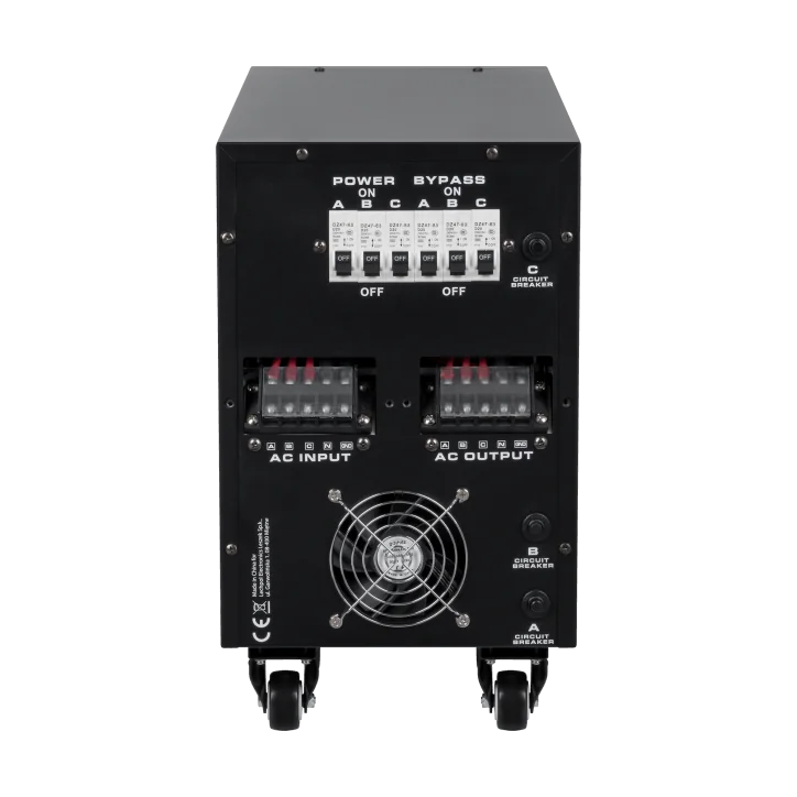 W trybie trójfazowym istotne jest zachowanie równowagi między fazami. Stabilizator monitoruje i kontroluje napięcie na każdej fazie, aby zapewnić zgodność między nimi - wyrówna zbyt wysokie lub zbyt niskie napięcie wejściowe i poda na wyjście napięcie po stabilizacji. Jeżeli w tym trybie któraś z faz nie zadziała poprawie lub jest nie podłączona, to w urządzenie uruchomi zabezpieczenie i nie poda napięcia na wyjście, informując o tym poprzez kontrolkę „BŁĄD FAZY”.