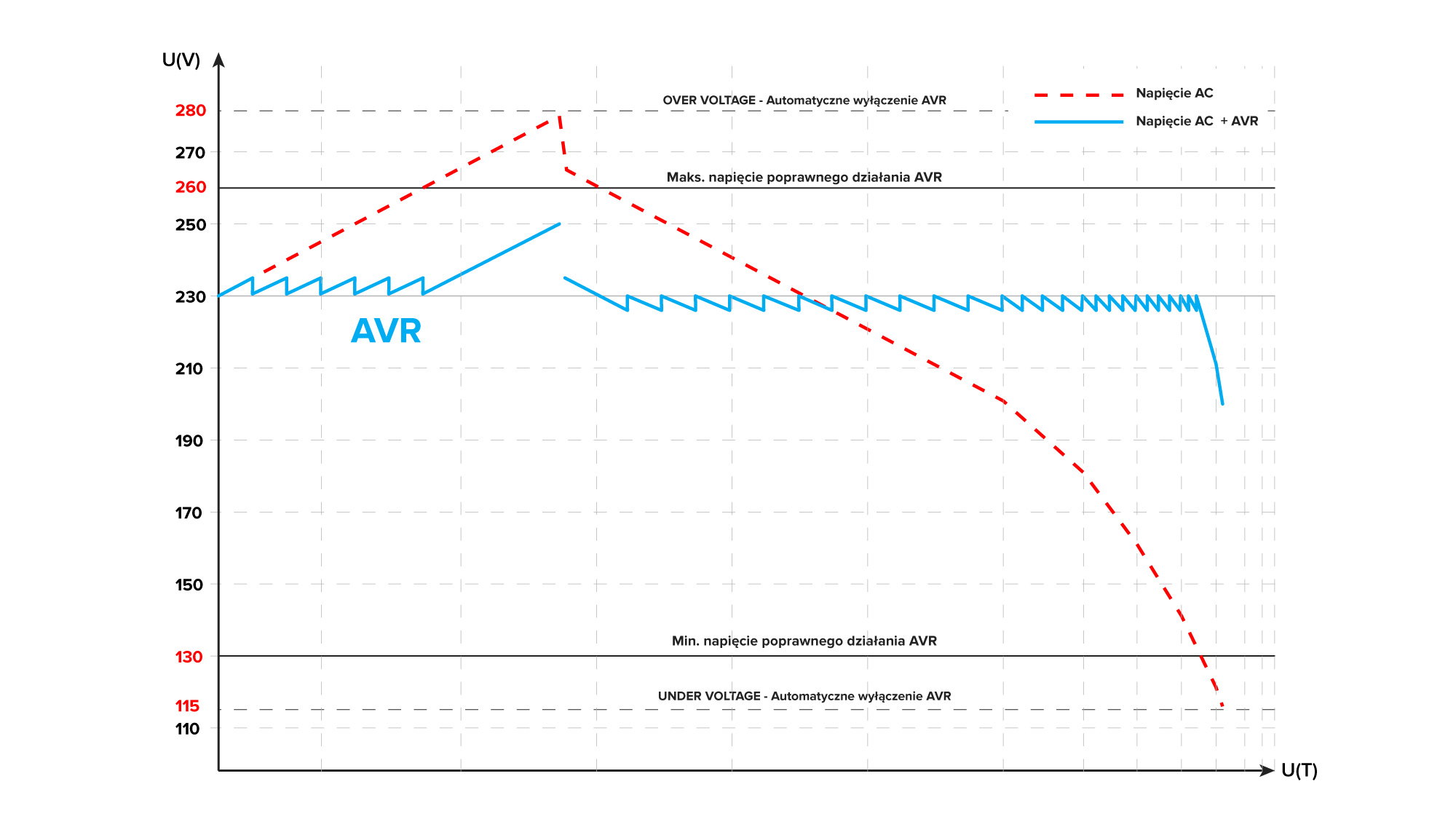 Jeśli potrzebujesz stabilizatora napięcia do urządzeń posiadających duży chwilowy prąd rozruchowy wybierz model wyposażony w funkcję opóźnienia załączenia DELAY. KEMOT PROavr-80k, został wyposażony w przycisk opóźnienia załączania DELAY w zakresie od 6 do 180 sekund, co obniży ryzyko jego uszkodzenia, gdy podłączone do niego urządzenia mają duży chwilowy prąd rozruchowy. Ponadto stabilizator KEMOT PROavr-80k posiada zabezpieczenia przed zbyt wysokim i niskim napięciem, przeciążeniem, przegrzaniem i zwarciem.