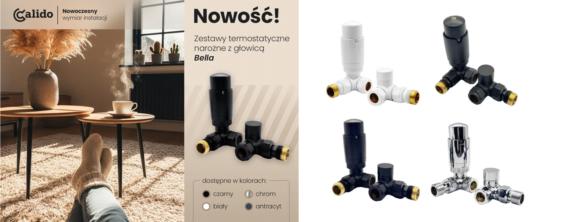 Termostat grzejnikowy w czterech kolorach narożnikowe Pex